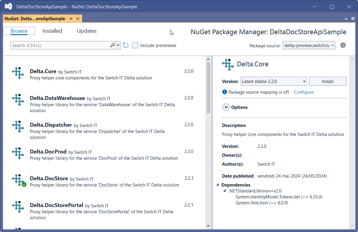 If you are Microsoft .Net developer, interacting with the Delta APIs can be greatly simplified by using Delta nugets (.Net Standard 2.0). This can also simplify the management of Delta version upgrades.
